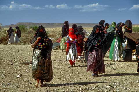 The vivid dress of Middle Eastern women.