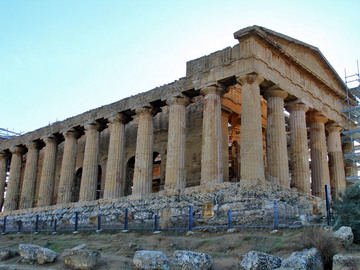 models an architectural style similar to Cybele’s Temple on the Palatine Hill in first century Rome. The primary difference between the Temple of Magna Mater (Cybele) on the Palatine Hill in first century Rome and the Temple of Concord is that Cybele’s Temple had six columns across the front (at the top of the white stone steps) but only three columns on each side. The white stone steps of Cybele’s Temple (see earlier photo) are still visible today.