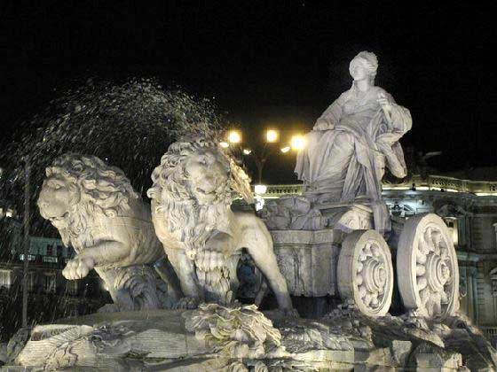 This Spanish fountain, honoring Cybele, pagan fertility goddess of ancient Rome, depicts Cybele riding in her chariot pulled by lions.